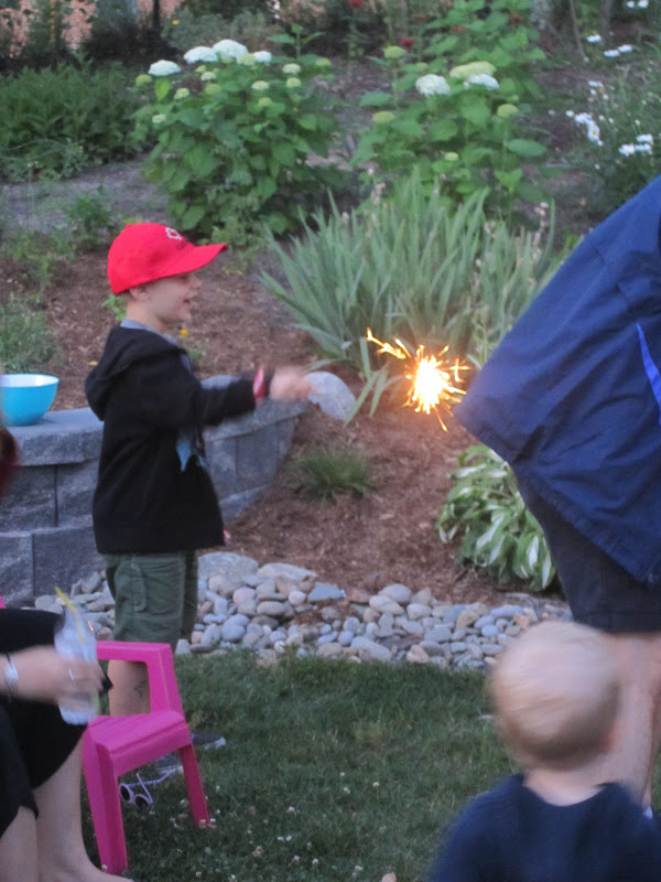 Sunday - church (which was rather bleak since everyone was in shock) and then M's annual Canada Day barbecue and fireworks. It was so much fun. I got to be silly on a theme and we saw fireworks and roasted marshmallows over a fire. It was exactly how I want to spend Canada Day!